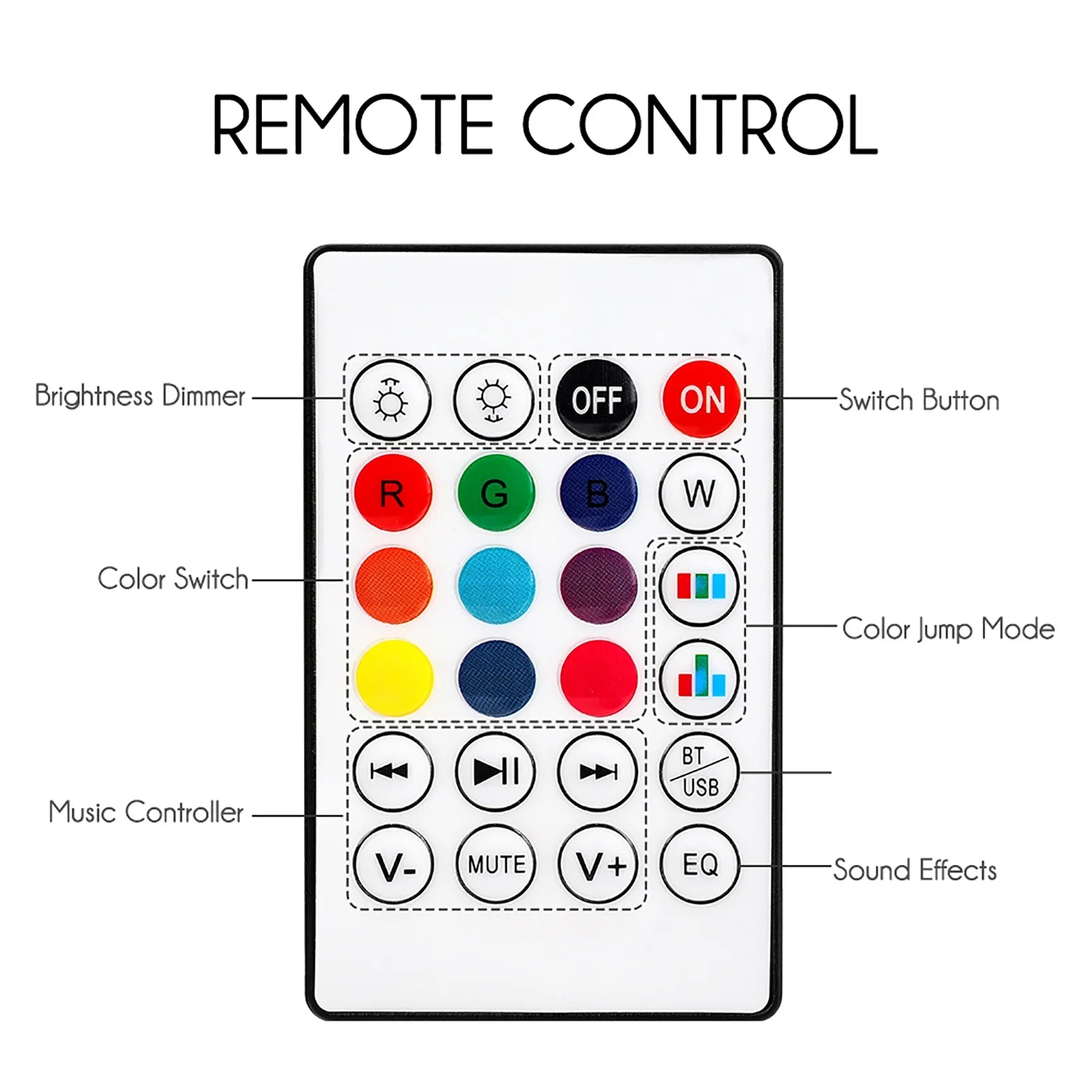 Ajusta brillo, cambia colores, enciende/apaga y controla efectos sin moverte de tu lugar (24 teclas).