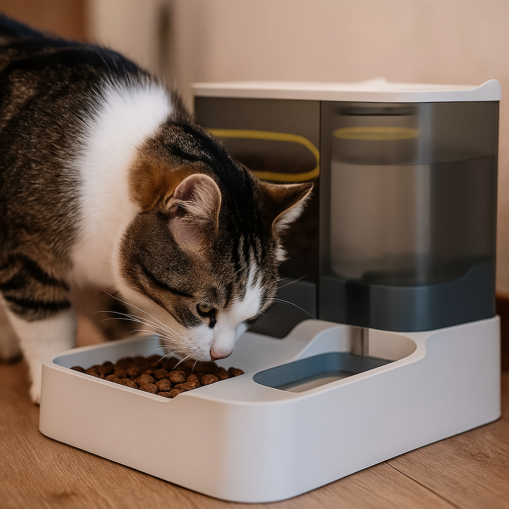 Haz que alimentar a tus mascotas sea más fácil y ordenado con este dispensador doble automático. Su diseño elegante y funcional permite servir comida y agua al mismo tiempo, garantizando que tus peludos siempre tengan lo que necesitan. 💧🍖