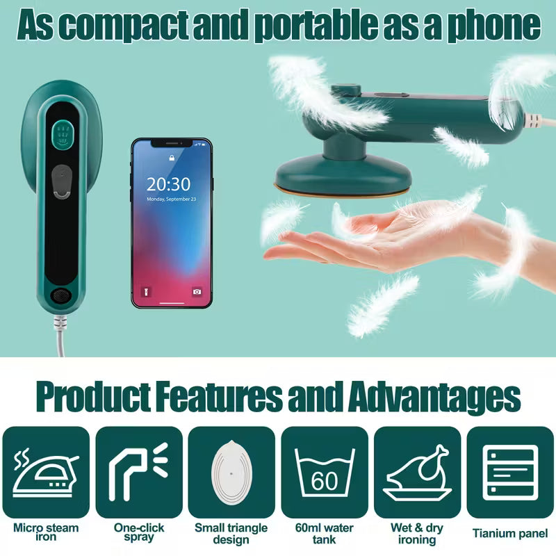 La plancha portátil de vapor es la solución ideal para mantener tu ropa siempre lisa y presentable, ya sea en casa, de viaje o en la oficina. Con un peso similar al de una lata de gaseosa, su diseño compacto y ergonómico permite llevarla fácilmente en tu maleta o mochila.